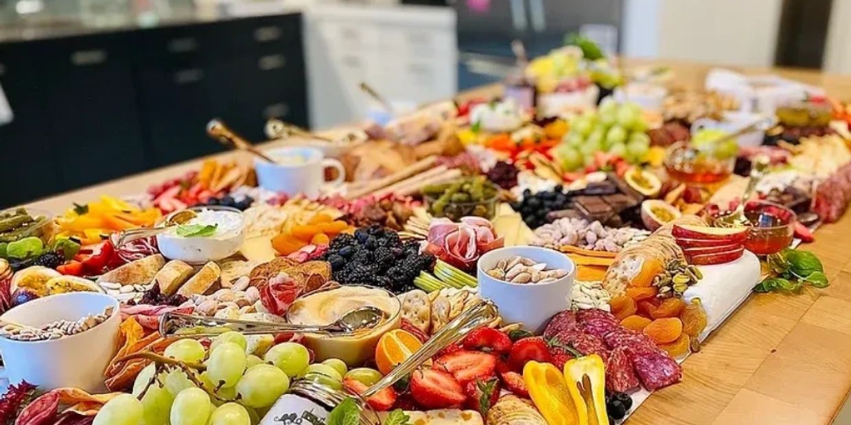 The grazing table is a bold spread of fresh, flavorful bites designed to impress and satisfy.
